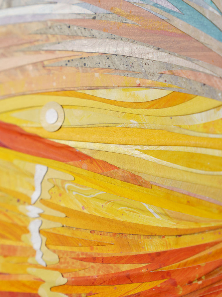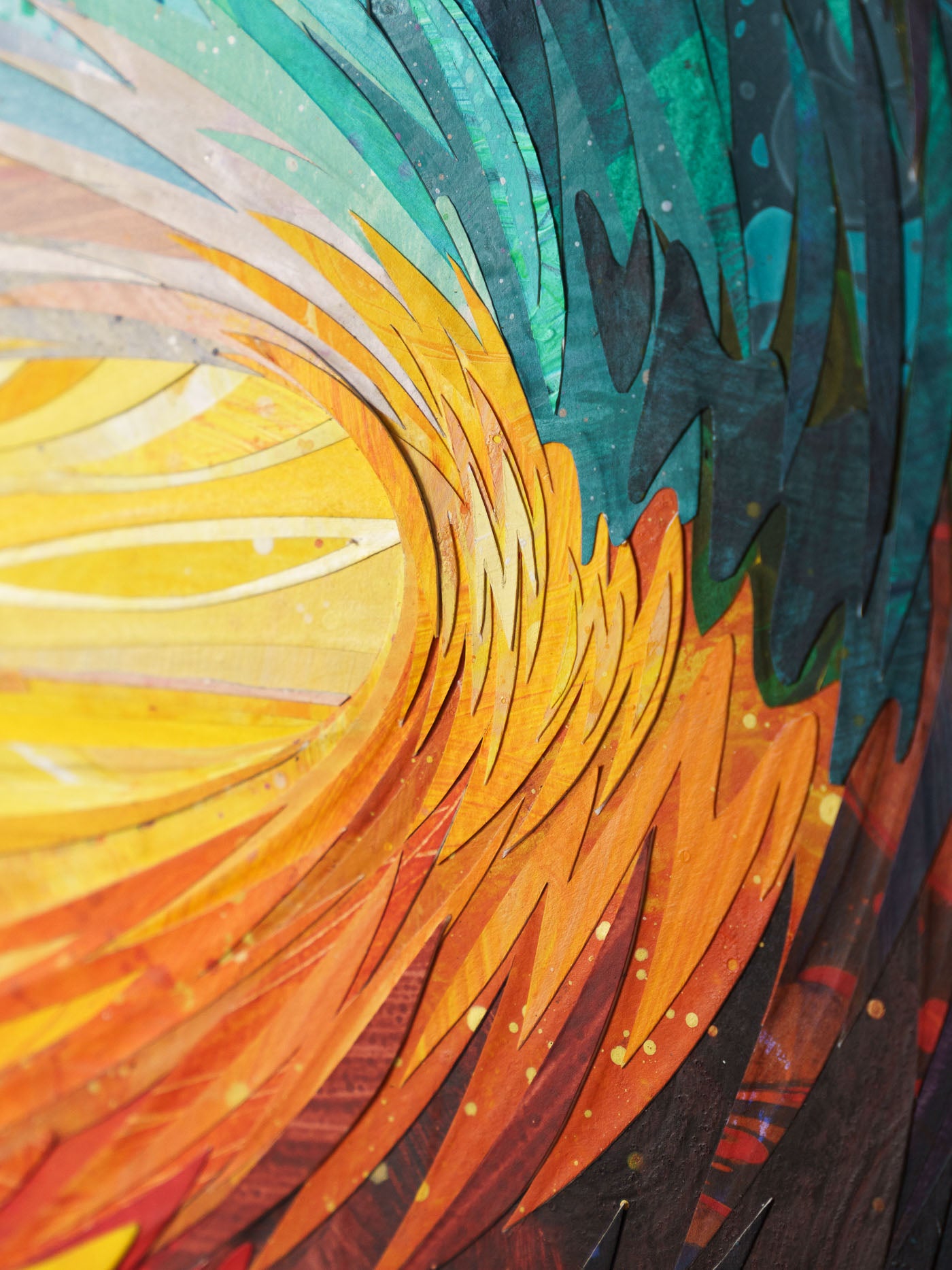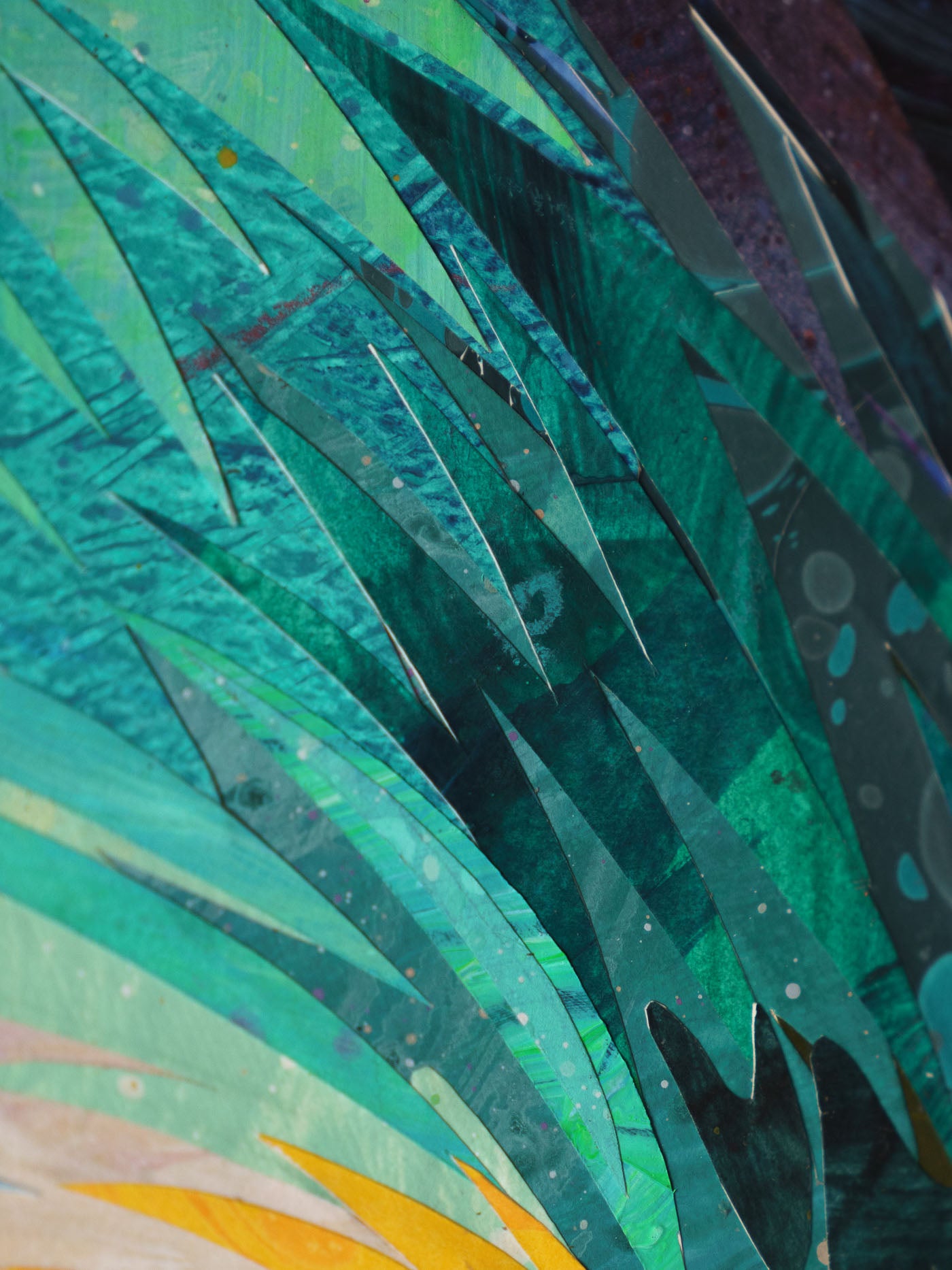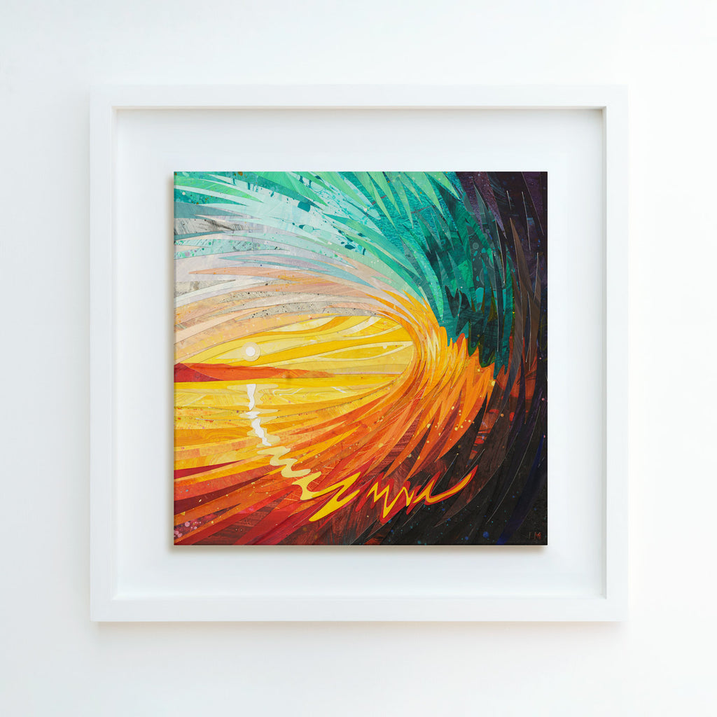 The collage will be framed behind anti-reflective and UV protective art glass in a smooth white, hardwood frame.