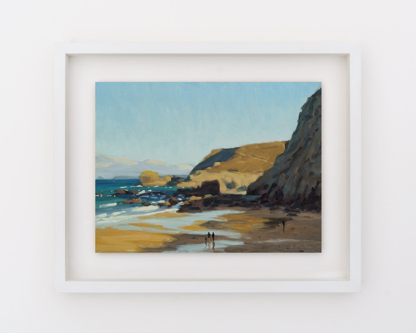 Price includes framing. Frames are hand made to order from solid hardwood and are hand painted matte white.