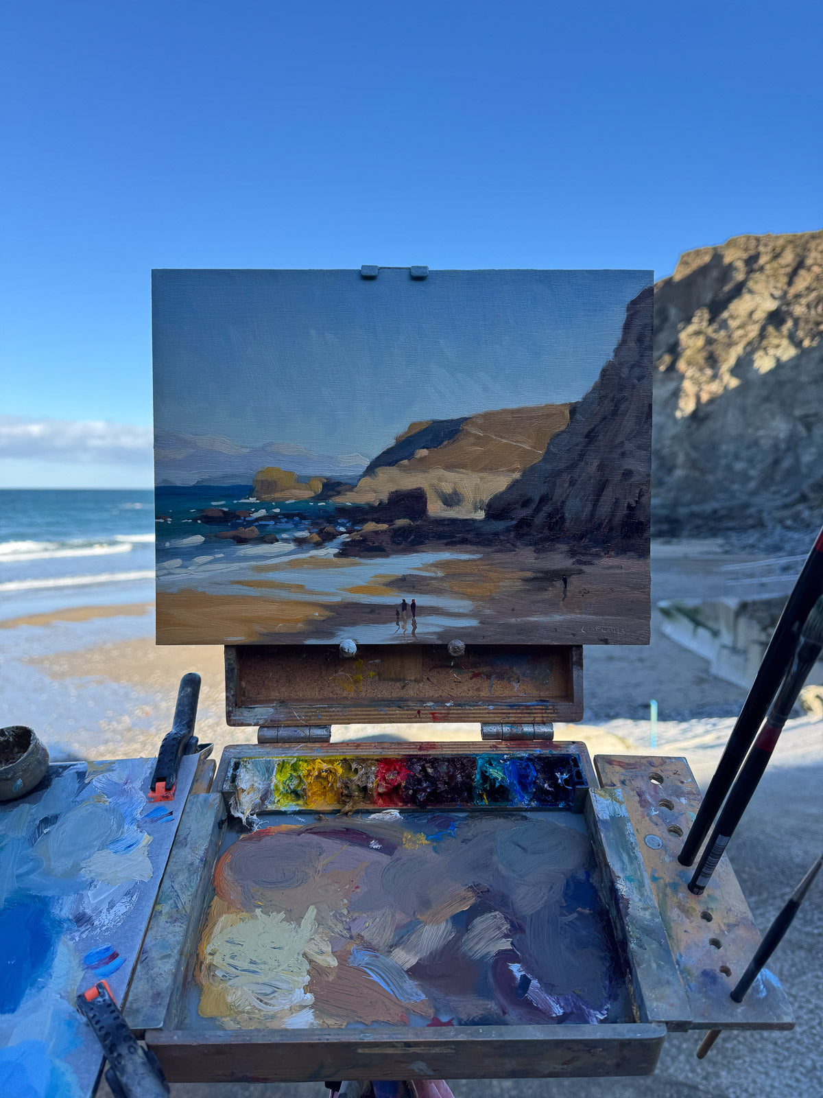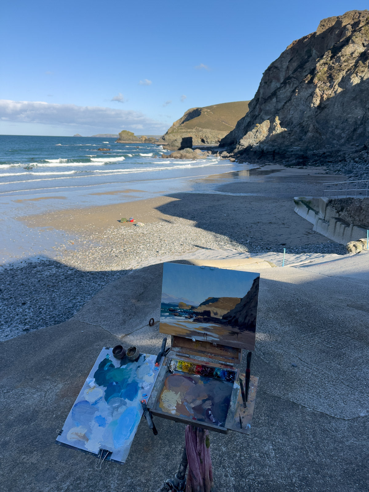 Painted from the boat ramp on a chilly November morning at Trevaunance Cove in Cornwall.